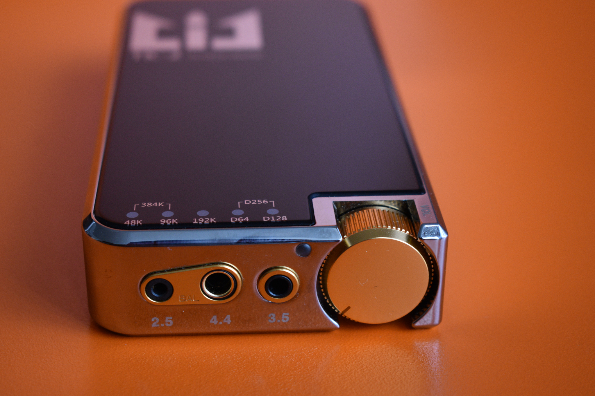 En la parte superior hay 5 luces de estado que indican los Hz de la señal, en la parte frontal tenemos salidas de 2,5, 4,4 y 3,5mm, junto con la rueda de volumen. En la parte posterior de la unidad hay dos puertos USB-C (uno para carga y otro para datos) que están ligeramente empotrados, junto con un selector de salida de línea/salida de auriculares, y el resto de la unidad es solo un espejo grande e impecable, con esquinas muy bien biseladas y, en general, una muy buena calidad de construcción.