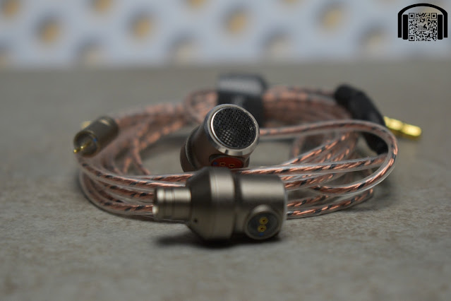 Esta vez, Tin ha optado por una conexión de dos pines para los cables, lo cual es bueno ya que he tenido bastantes problemas con sus conectores MMCX en el pasado. Los IEMs también tienen la parte posterior abierta, con una versión más grande del mismo filtro metálico en la boquilla como en la parte posterior de las carcasas.